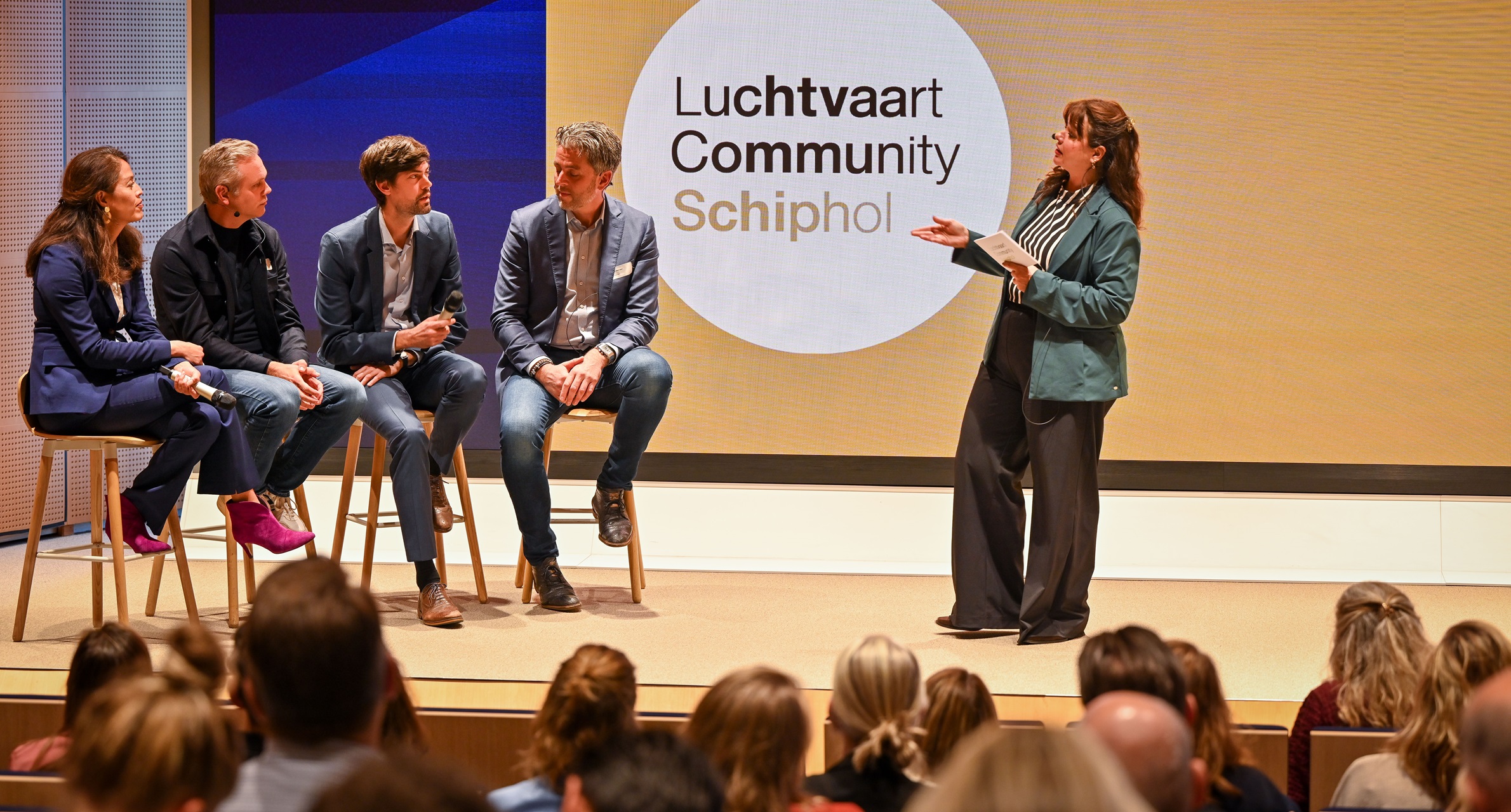 Na de keynote van David ging Paola Deplanu, sinds 1 mei jl. directeur van Luchtvaart Community Schiphol, in gesprek met het panel. Dit panel bestond uit Patricia Vitalis (Chief Operating Officer bij Royal Schiphol Group), Stefan ten Haaf (HR Data & Change Lead bij KLM), Joep Wessels (Manager Simulation bij de Training Organisation van LVNL) en Joost van Wieringen Manager Digitaal bij het ROC van Amsterdam. Zij gingen in op vragen als: Hoe speelt AI en/of robotica een rol in jouw organisatie en hoe neem je je medewerkers mee in deze veranderingen. Dit leverde interessante gesprekken op, ook met het publiek in de zaal.